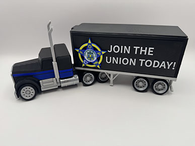 Great for recruiting events, with FOP Lodge and you can either have "JOIN THE UNION TODAY" or get a custom two line (12 letter limit each line) lettering on both sides of the trailer. 10.5" x 2.75".