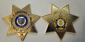 2024 Forth coin of our ADC Badge Coins Series. This is a large 3.75" coin that celebrates FOP44's 44th year Anniversary of supporting employees of ADC and is the current rendition of the ADCRR breast badge.