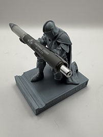 Add a touch of medieval elegance and functionality to your desk with this Kneeling Knight! Crafted from durable silver PLA, this unique piece is both a conversation starter and a practical accessory for your workspace. 3" x 5". Can hold a pen and can hold business cards in the front.